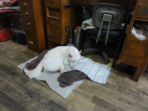 こんな雨の日は、退屈みたいで2匹ともよーく寝ています。