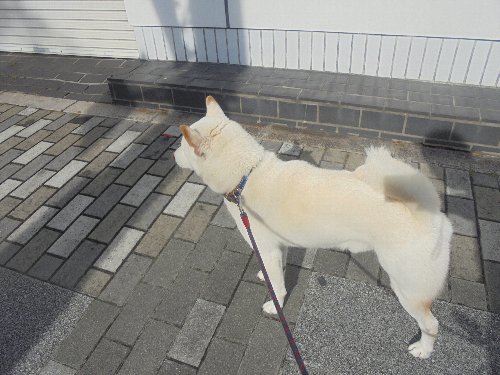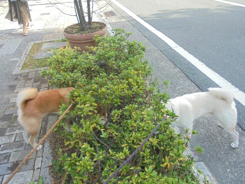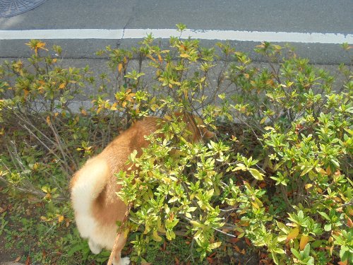 大通りを渡ったら、じきに植え込みに入って行ったチャロ君。