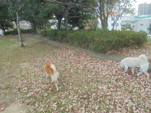 朝のお散歩、あっちも、こっちも、落ち葉のじゅうたん