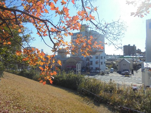真っ赤に色づいたモミジ、そしてオレンジ色の葉、、、