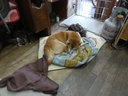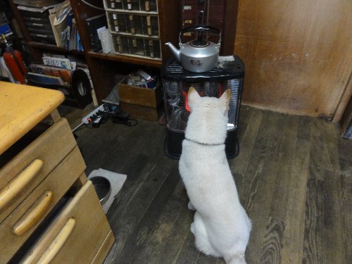 ストーブの前に陣取って、ずーっとストーブと向き合っています。