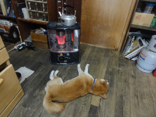 ストーブの前で、ほとんど死んだようになっているチャロ君。
