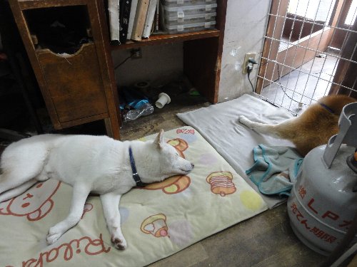 おやおや珍しい、シロ君、死んだようによく寝ています。