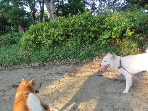 夕方の散歩も、やっぱり元気、元気なワンコ達です。