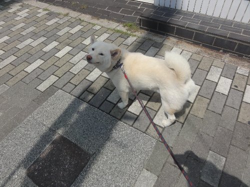 暑いなあ、まだかなあと待っている、シロ君です。