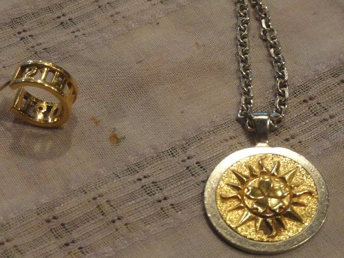 ペンダントのモチーフは、太陽にサクラ。