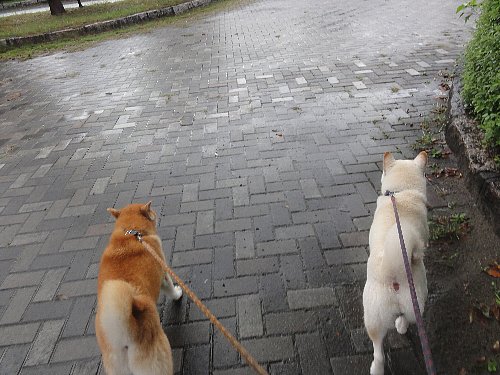 シロ君は、雨のお散歩が嫌いみたいです。