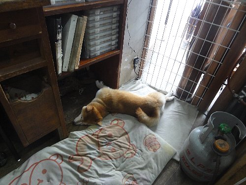 せまーい所で寝ています。