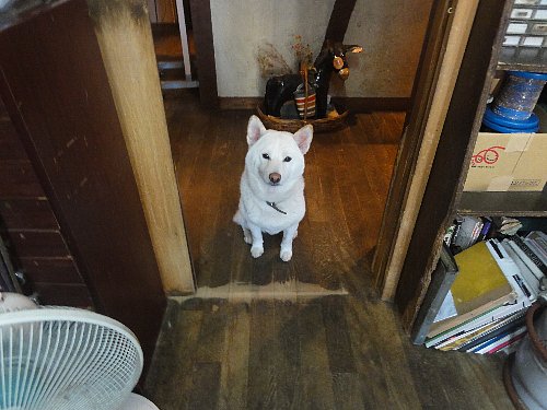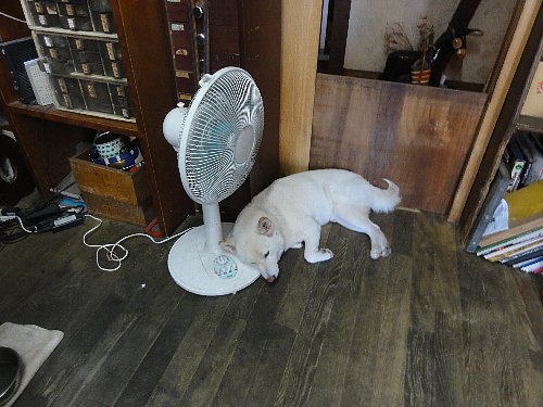 夏の風物詩、シロ君の扇風機の枕を見れるのも、