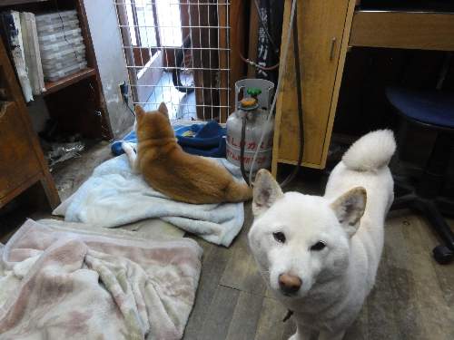 よーく見ると、下の方で、シロ君が、ご馳走かな?と、