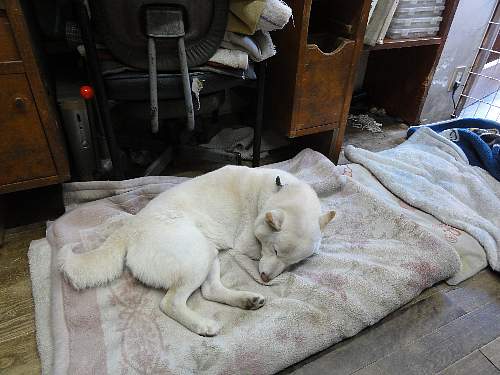 今日は、シロ君珍しく、とってもよく寝ていました。