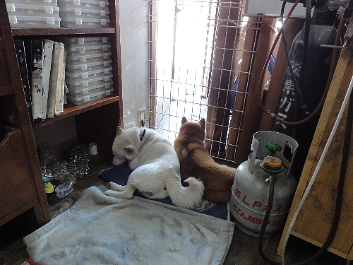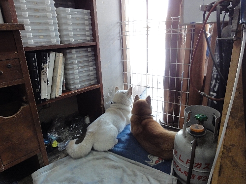 誰か来ないかなあと、2匹で仲良く