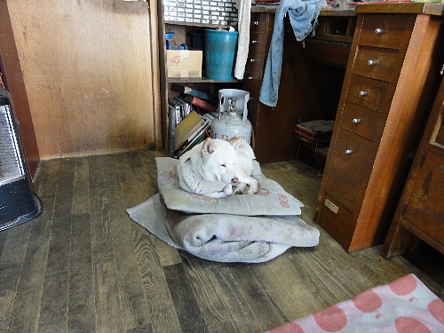 朝ごはんをあげて、干しておいた布団をよせて、、、