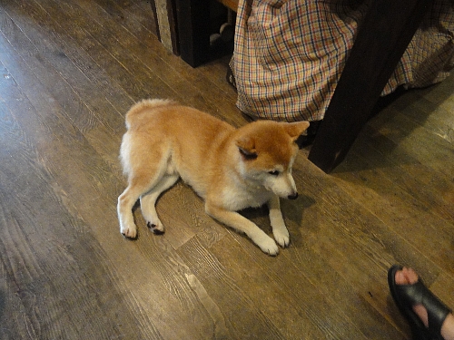 あまりの暑さに、お店のクーラーの近くで、ひと涼み。