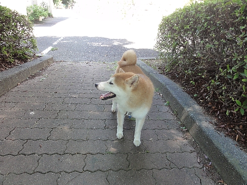 愛想笑いして、夕方の散歩、待ちきれないの図です。