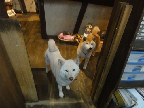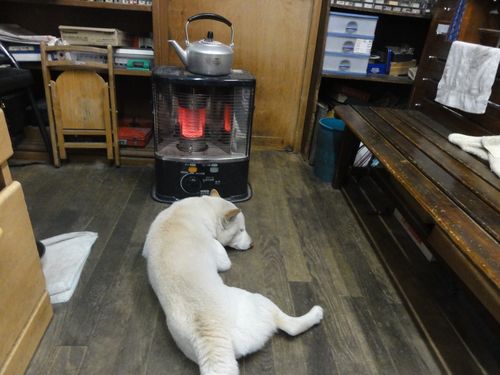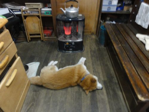 ちゃっかりワンコ達、交代でストーブの番人です。