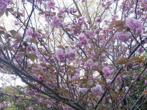 小道沿いにずーっと八重桜が咲いています。