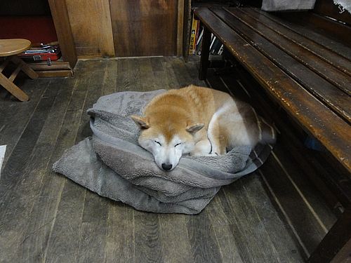 チャロ君、特等席で、ちゃっかりお休みです。