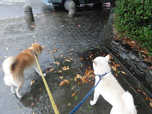 しかも、お散歩の頃には、結構まとまった雨足、、
