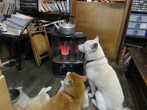 ストーブの前に集まってきました。
