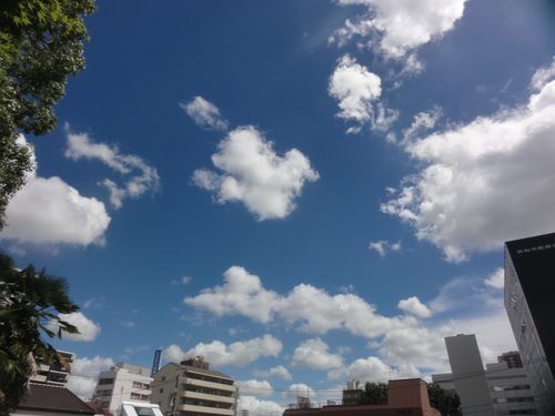 散歩の途中、時々止まって、空の青さにうっとり、、、