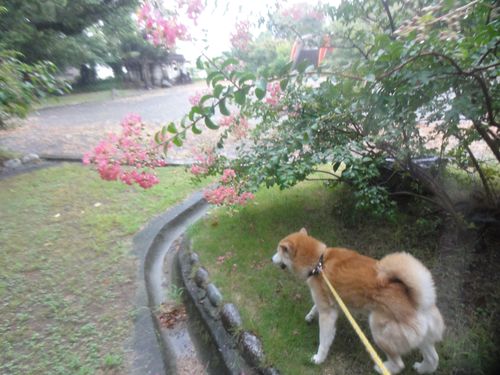 のんびり、サルスベリの花を見ている