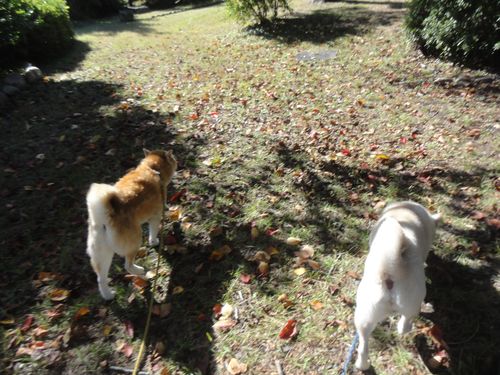木漏れ日の中、ワンコ達と、日向ぼっこしながら