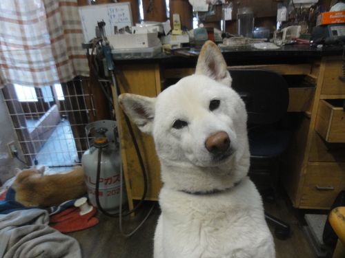 シロ君、お散歩行こうよと、ひざに乗ってきます。