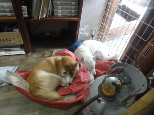 ワンコ達も寒いのか、まーるくなって寝ています。