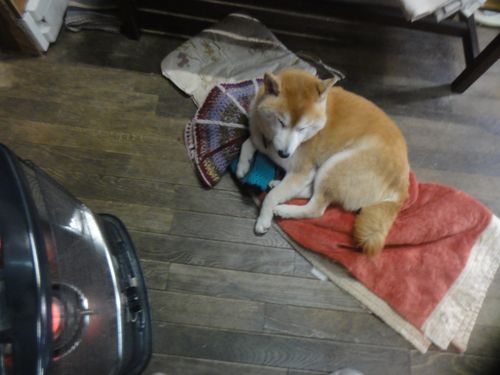 ストーブの前でウトウト、、、
