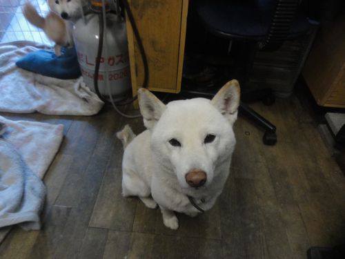 シロ君、私のそばで、ジーっと、、、
