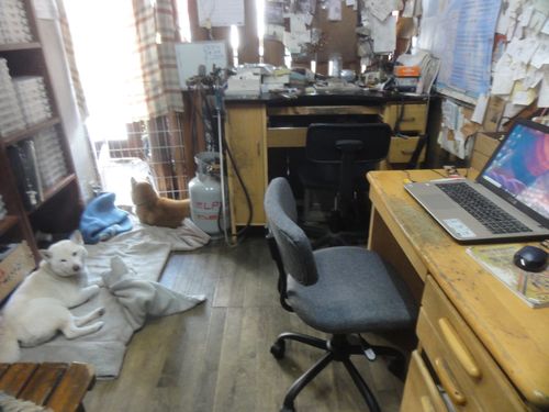 奥の作業机の椅子が、、ガタガタで、だましだまし