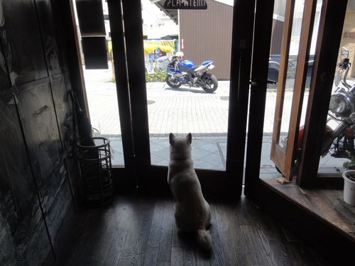 毎朝、シャッターを開けると、一目散にワンコ達の所へ。