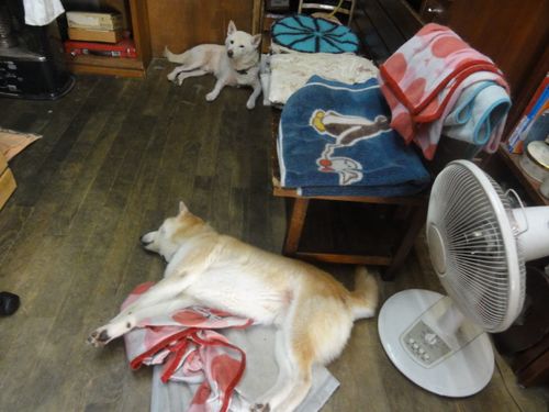 工房の入り口で、寝たり起きたりしてるシロ君。
