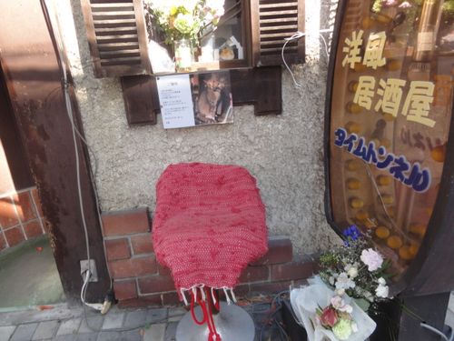 お散歩の途中のお店の前。