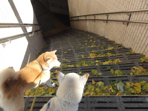 入り口にも、イチョウの葉っぱ、いっぱい落ちてたよ。