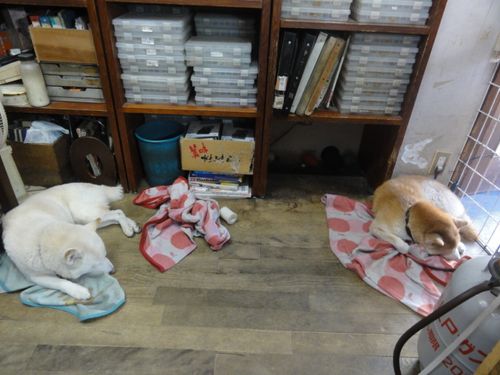傍らでは、ワンコ達が、気持ちよさそうに寝ています。