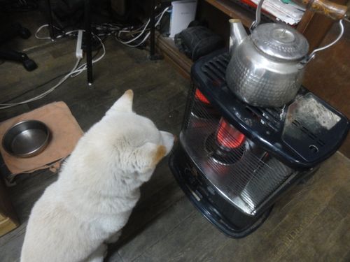 ストーブをつけると、シロ君が、すぐに寄ってきます。