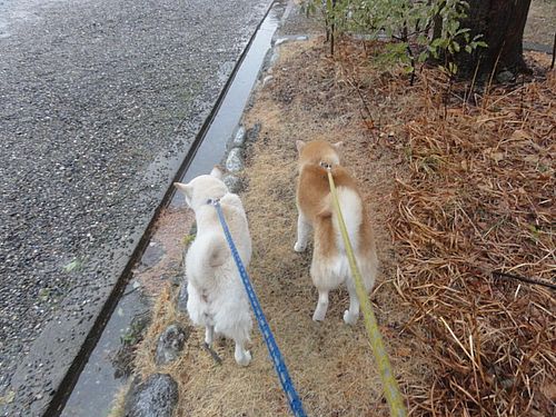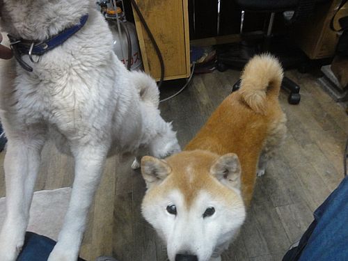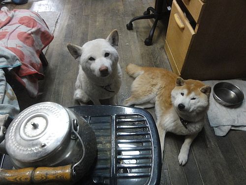 ワンコ達、2匹仲よく、ストーブにあたっていました。