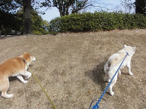 ワンコ達と、のんびり、朝のおさんぽ。