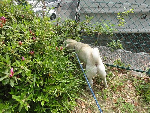 珍しく、シロ君、ベンチの上で寝ちゃってます。
