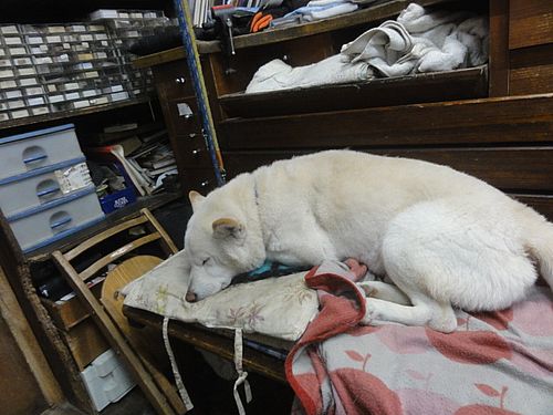 雨の音を子守歌に、シロ君、気持ちよさそうに