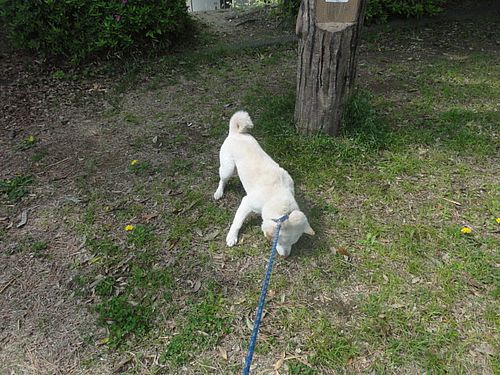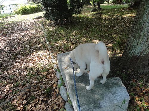 途中で、シロ君、何かを発見。