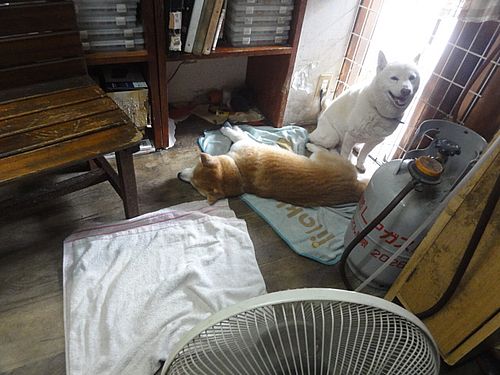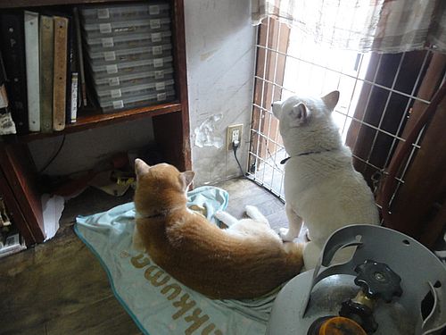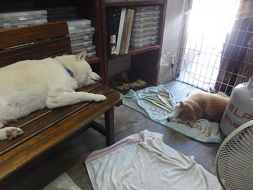ありゃりゃ、シロ君が、ベンチから転げ落ちたようです。