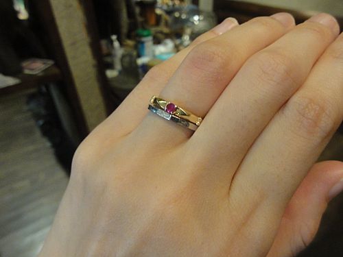 先日作ってくれたルビーの婚約指輪。