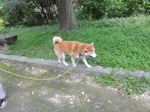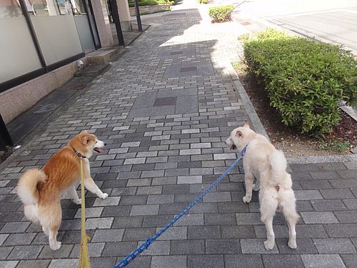 建物の日陰づたいに、コソコソと朝のお散歩。