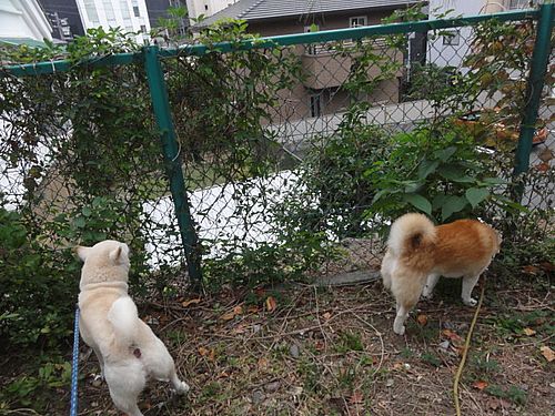 ワンコ達は、のんびり、草なんか食べてます。