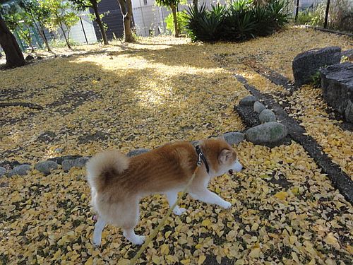 イチョウのじゅうたん、楽しんでます。
