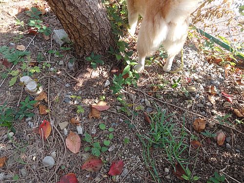 チャロ君、いつもの場所で、葉っぱ