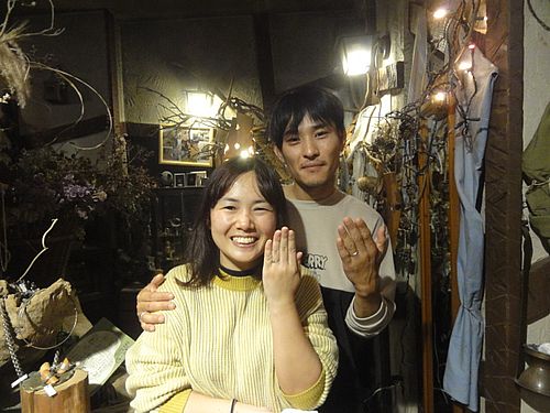 昨日、結婚指輪を取りに来てくれた二人。